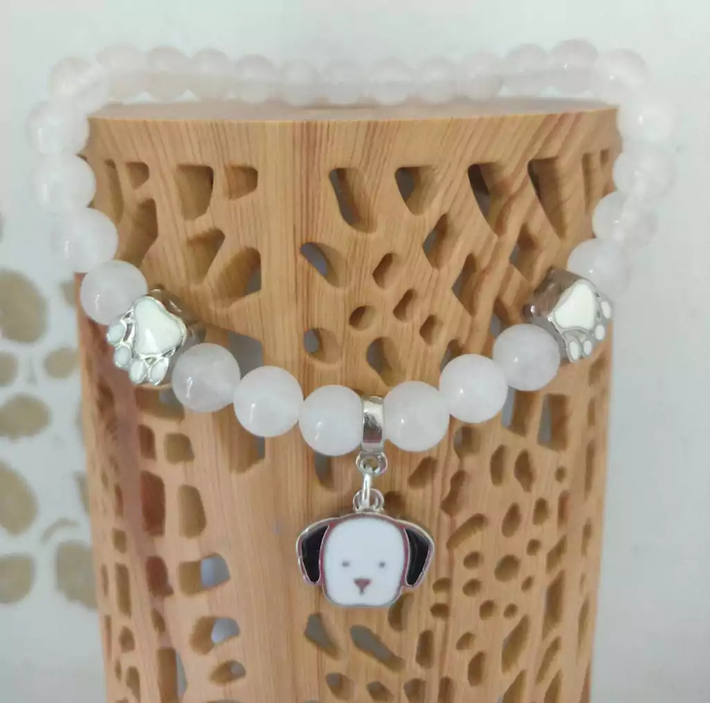 Coleira Japamala Quartzo Branco - Talismã para Pet