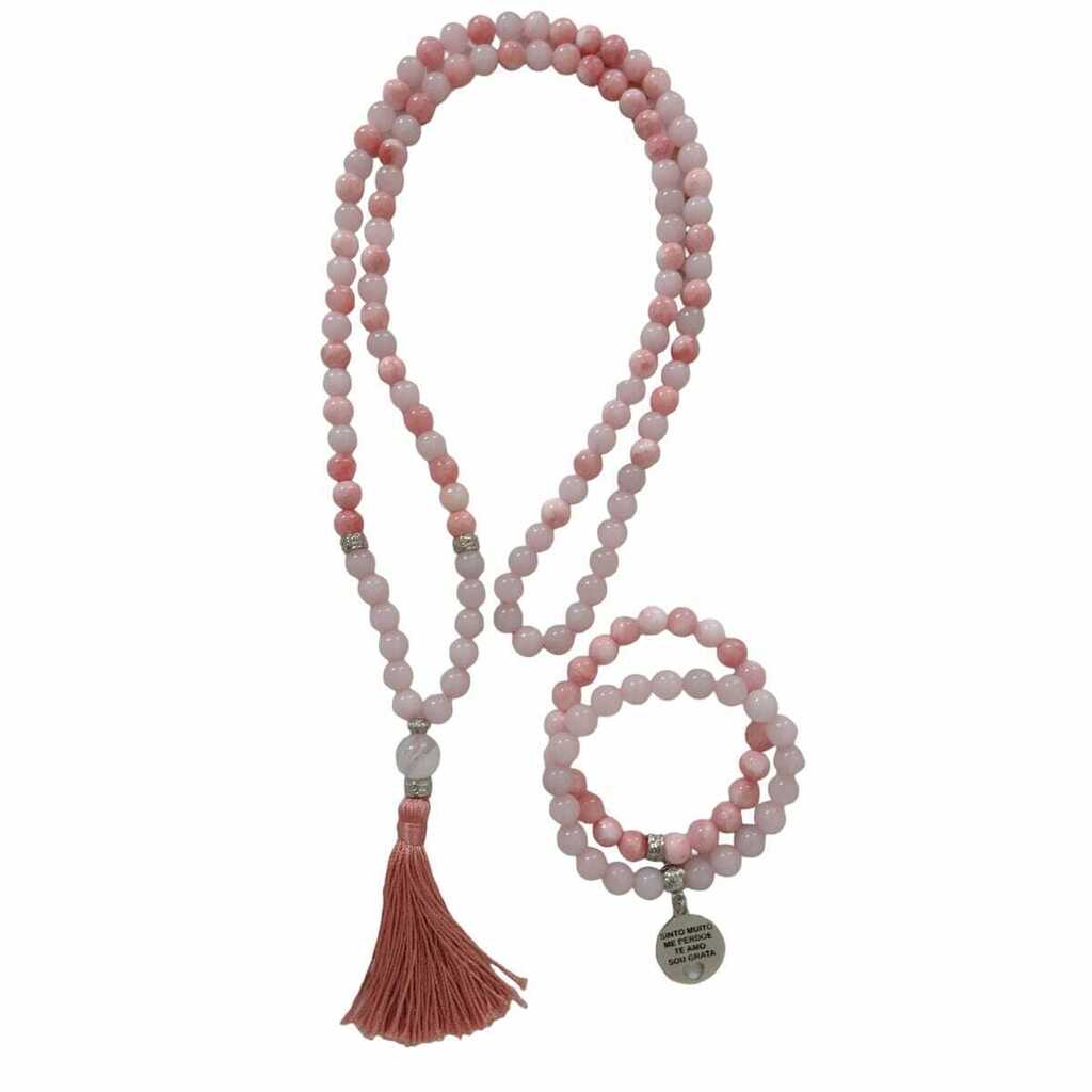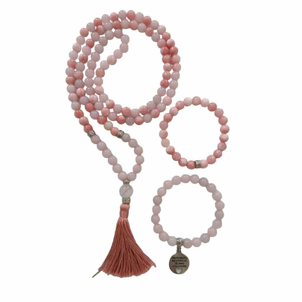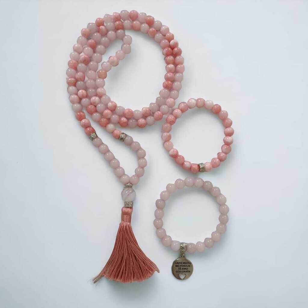 Japamala Quartzo Rosa E Jade Rodocrosita 108 Contas 8mm + 2 Pulseiras
