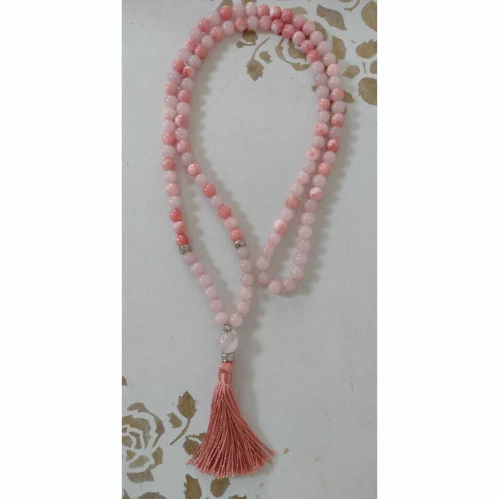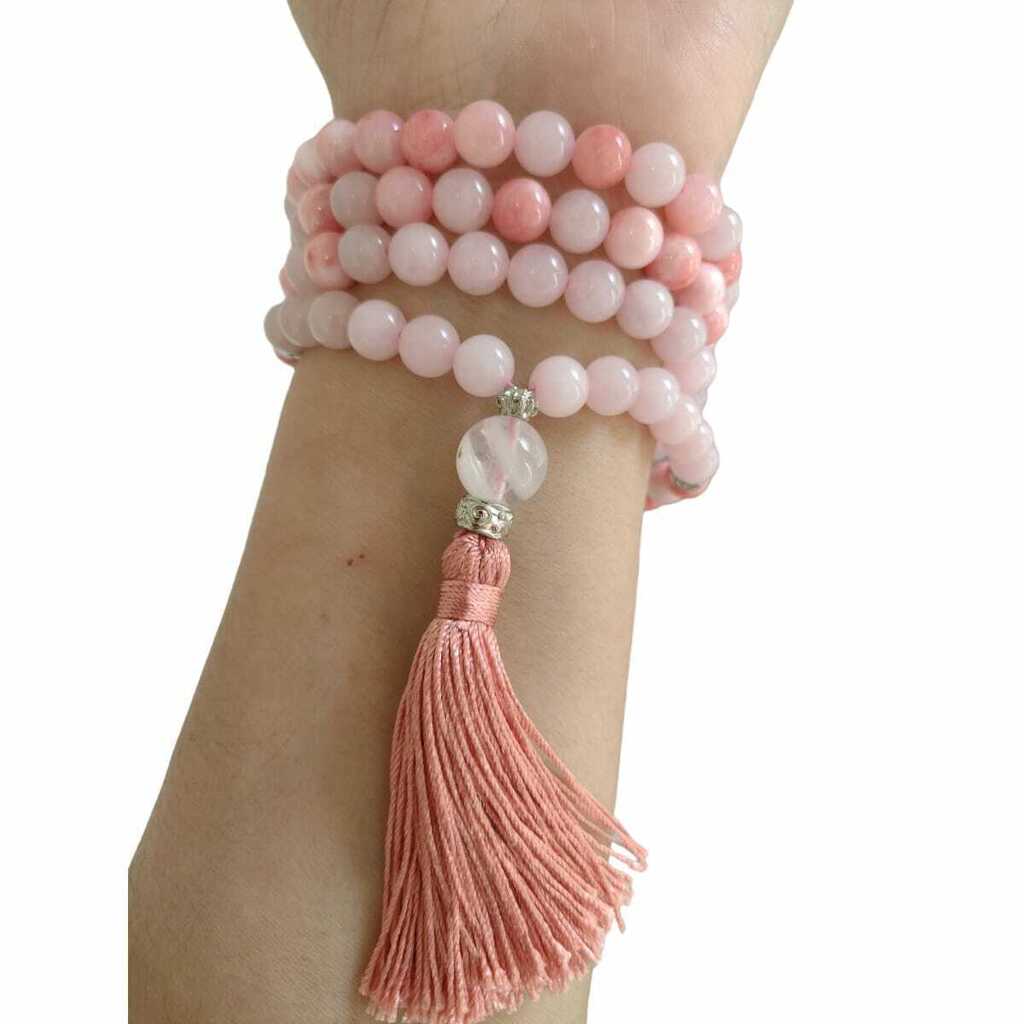 Japamala Pedras Quartzo Rosa e Jade Rosa Rodocrosita com 108 contas 8mm