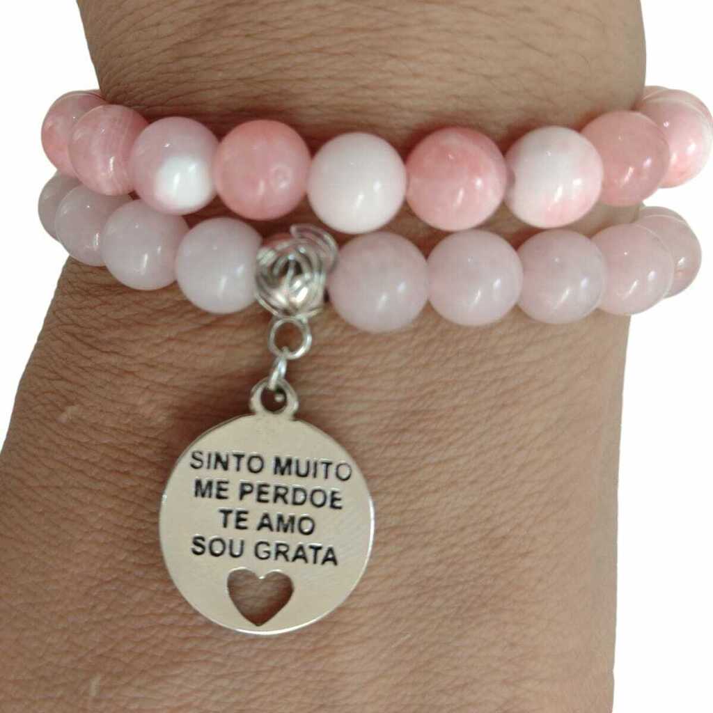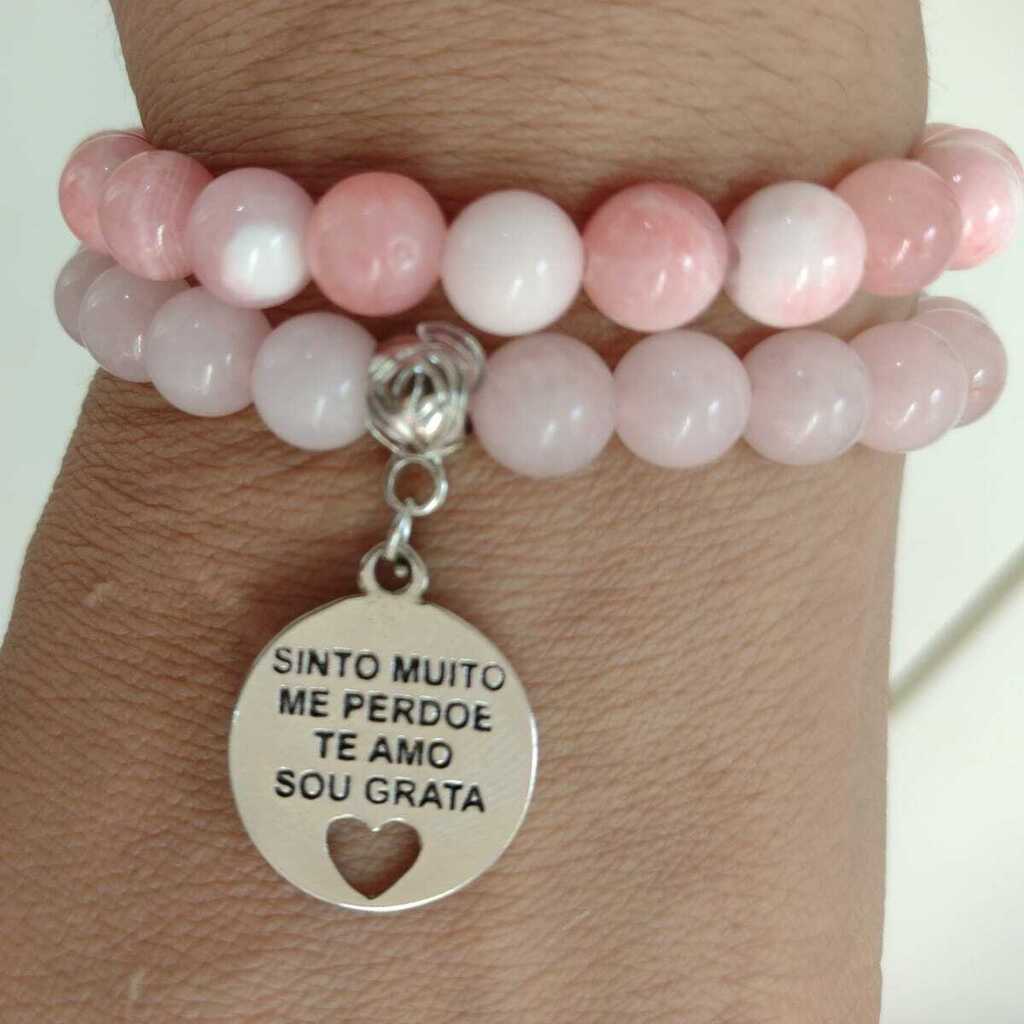 2 Pulseiras: Pedra Quartzo Rosa e Pedra Rodocrosita