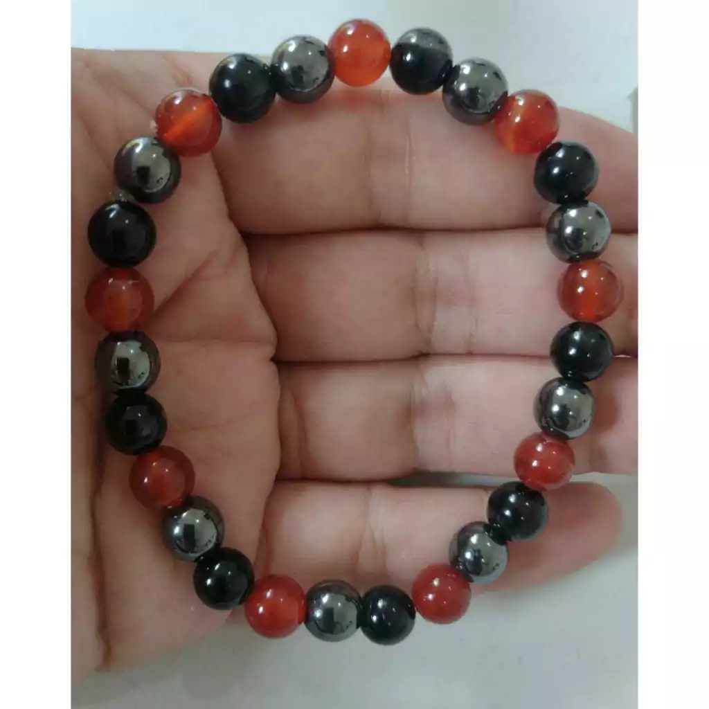 Japamala Turmalina Negra com Ágata de Fogo e Hematita + Pulseira 18cm