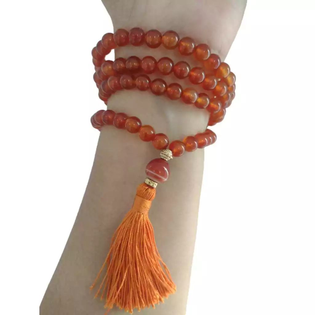 Kit Japamala Pedra Cornalina 108 contas 8mm + 27 contas de 8mm